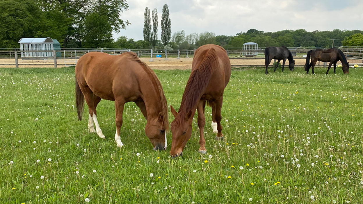 Da unsere Böden schwere Böden sind, haben wir trotz regelmässiger fruktanarmer Nachsaaten sehr reichhaltige Weiden. In der Weidesaison lassen wir deshalb die Pferde nur stundenweise grasen. Die Weiden werden dabei in kleine Parzellen unterteilt, um dort ein paar Tage lang viele Pferde grasen zu lassen und ihnen dann eine neue, frische Parzelle anzubieten.