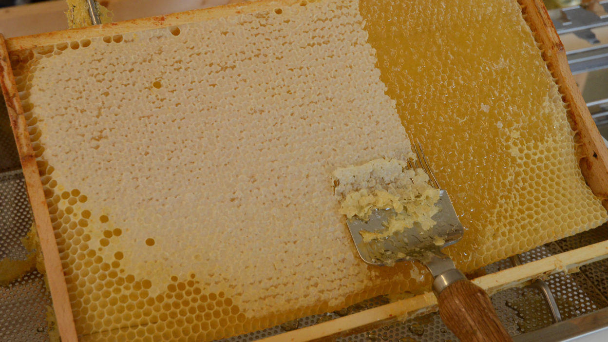 Jedesmal, wenn wir die Mittelwände mit den gefüllten Honigwaben herausnehmen, ist es unglaublich, wieviele Kilo Honig diese kleinen Wundertierchen in wenigen Wochen zusammensammeln.