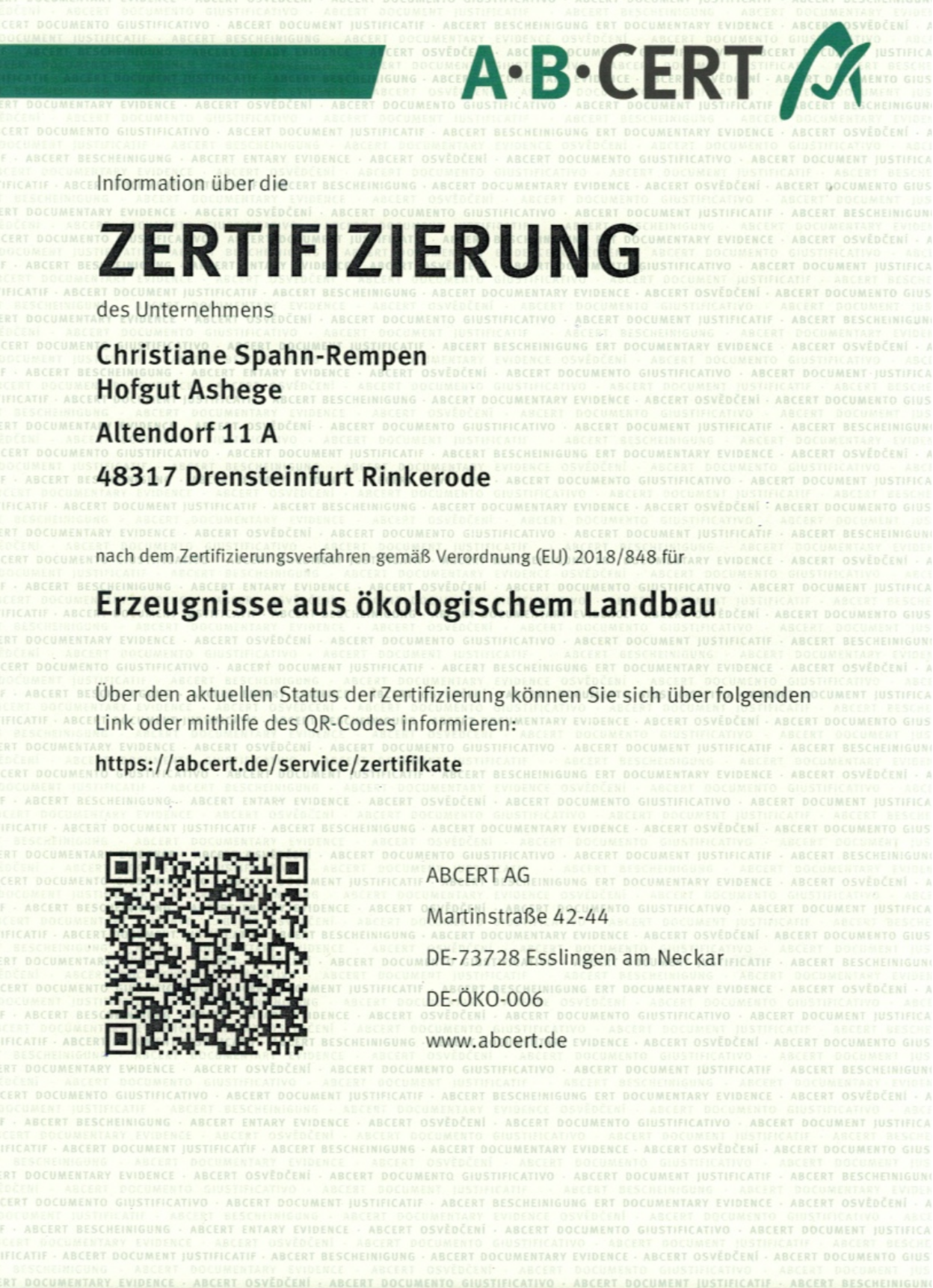 Abcert-Prüfbescheinigung als PDF